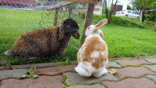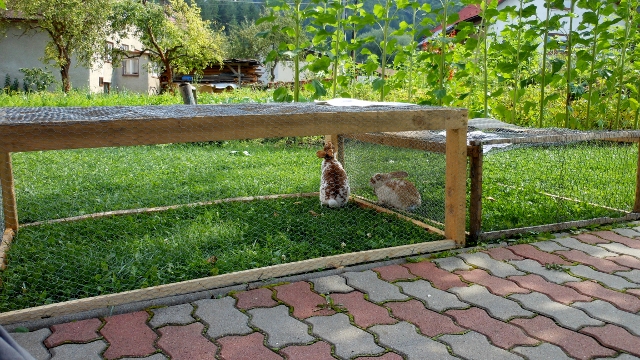 Keďže každý králik potrebuje dostatok pohybu a občas sa pásť na trávičke, máme urobené výbehy vonku, kde si môžu užívať pohybu do sýtosti hlavne v lete, ale aj inokedy pokiaľ to počasie dovolí. Niekedy ich necháme behať len tak navoľno, ale len pod dozorom.